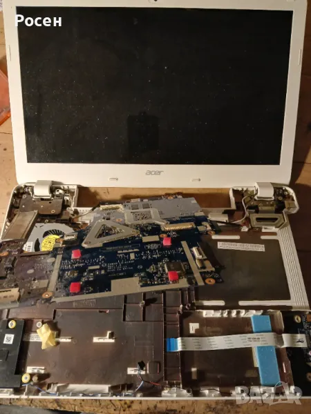 Липсват всички пластмаси, клавиатура, SSD, HDD, дясна панта, wi-fi модул и болчетата.