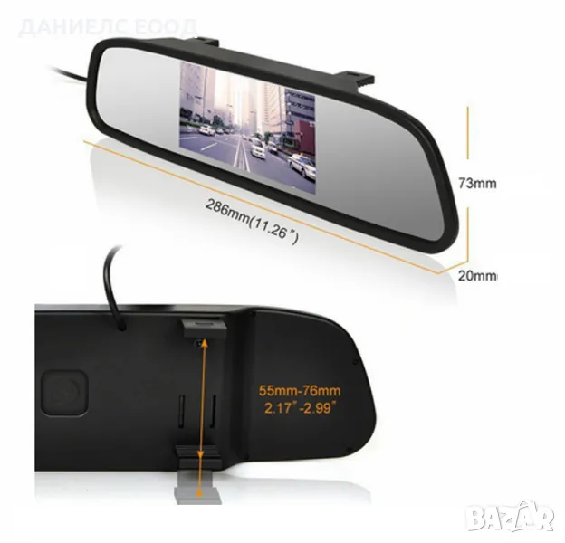 Огледало за обратно виждане с вграден монитор TFT-LCD 4,3" инча с изход за камера за подпомагане на паркирането.