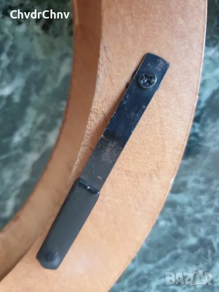 Запазени, направени от качествено дърво, с окачвач и гумирани пружинни пластини (да не повреждат/драскат чинията при задържането/стягането й).