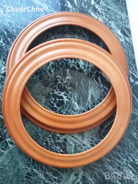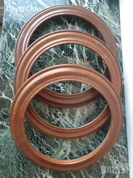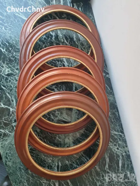 5 бр еднакви (дърво с месингова вътрешна лайсна) диаметър 26 см (външен) и 20,5 см (вътрешен).