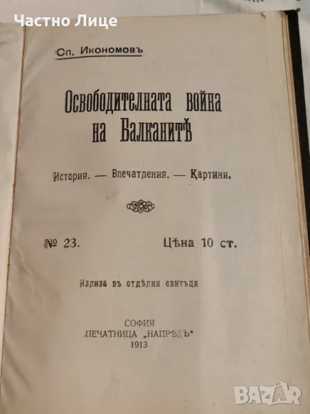 Антикварна Книга Освободителната Война на Балканите 1912 г от С. Икономов → Обява 47173674