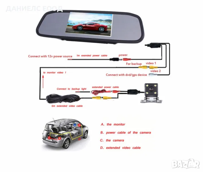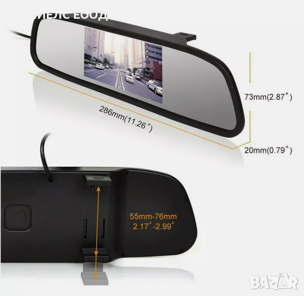 Огледало за обратно виждане с 4,3 инчов дисплей и камера за заден ход