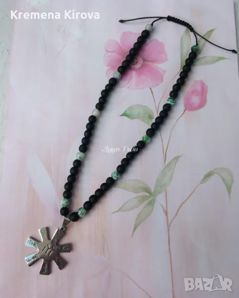 Български амулети за защита за автомобил. Със стоманена розетата от Плиска. Оникс и ахат. → Обява 47176020