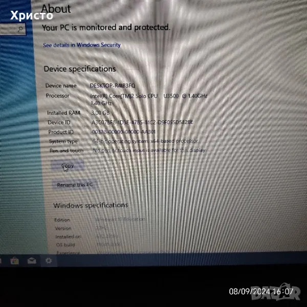 Лаптопа си работи много добре без забележки има си зарядно с преинсталиран Windows