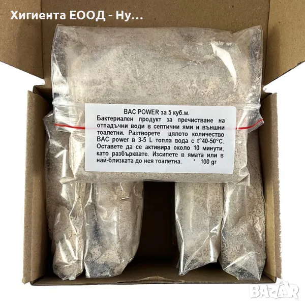 Опаковка: Кутия 500гр. - 5 пакетчета Bac Power х 100 гр. активен прах