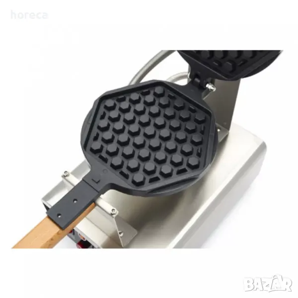 Професионален гофретник е здрав и лесен за работа, с масивна дръжка за бързо производство на гофрети с пчелна пита. Чугунена плоча за печене с незалепващо покритие и контрол на температурата от 50 - 300° C. Гофретникът загрява бързо, благодарение на мощния нагревателен елемент и остава топъл по време на употреба. Корпус от неръждаема стомана и лесна за почистване повърхност. Снабден с таймер за предотвратяване на прегаряне на вафлите. Крачетата от неръждаема стомана в долната част осигуряват стабилност на плота.