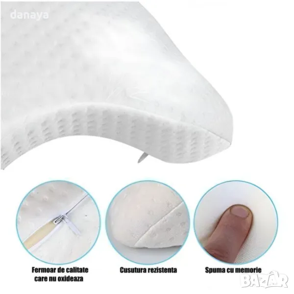 Анатомична извита терапевтична възглавница с мемори пяна, бяла, 36 X 29 см