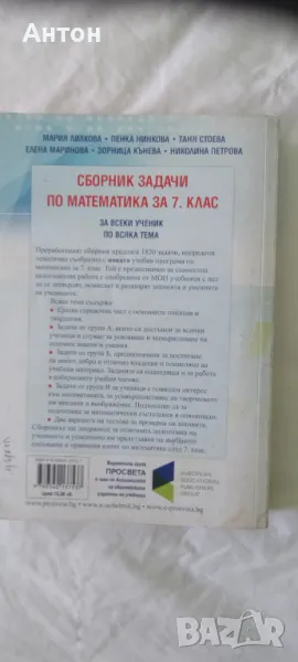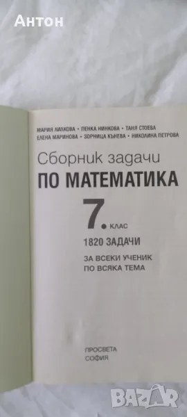 Сборник задачи по математика за 7. клас. 1820 задачи. За всеки ученик. По всяка тема. Учебна програма 2023/2024 (Просвета) АВТОРИ: Елена Маринова,Таня Стоева, Пенка Нинкова,Мария Лилкова,Зорница Кънева,Николина Петрова