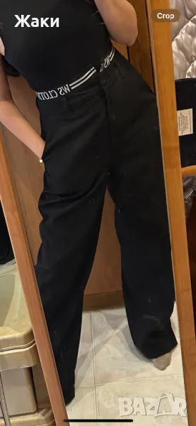 Обуван два пъти, без забележки, широк модерен панталон с надпис. Размер М, черен дълъг, свободен и удобен, купуван за 60лв