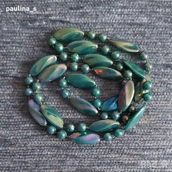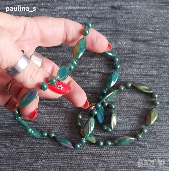2. Колаж / Цената е крайна 8,99лв. Винтидж зелен гердан от полихромни мъниста, ръчна изработка, мънистата са неподвижни. Дължина 70см, нов.