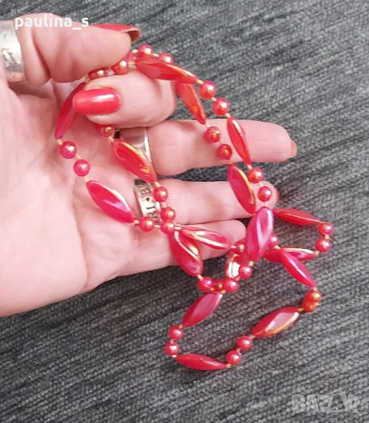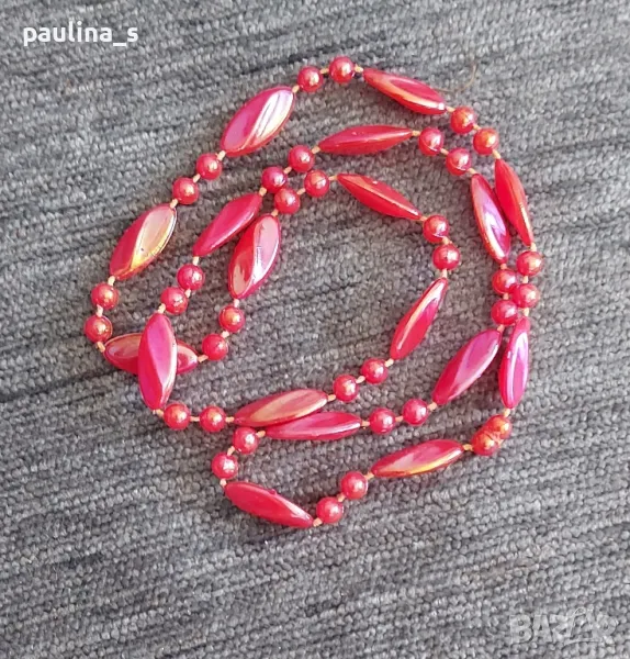 4. Колаж / Цената е крайна 7,99лв. Винтидж червен гердан от неподвижни полихромни мъниста, нов. Дължина 70см.