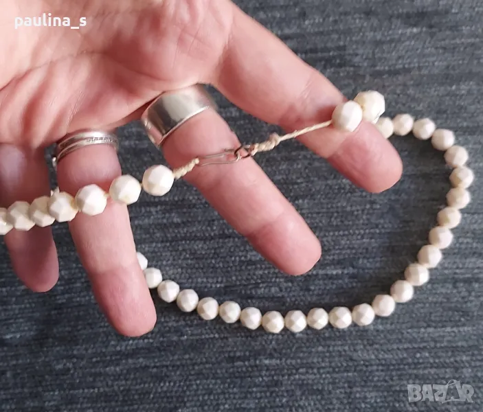 6. Колаж / Бял гердан тип чокър, от полихромни мъниста в кръгла форма, стоят като шлифовани, стара закопчалка, във вид видим от снимките. Дължина 52см. Цената е крайна 8,99лв. Моля, разгледайте и другите обяви и последвайте профила. При покупка за над 90лв, поемам част от доставката до офис на Еконт или правя отстъпка от общата цена, така цената за доставката не изглежда твърде непосилна. Приятно разглеждане. Продажбата е с благотворителна цел, цената не се коментира по никакъв начин. Благодаря за вниманието и отделеното време 🙂