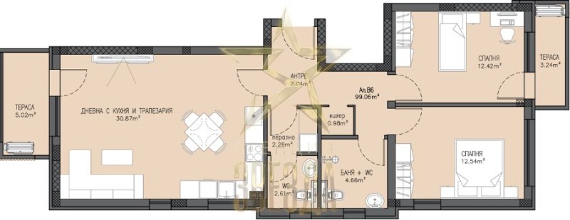 - **Брой спални:** 2