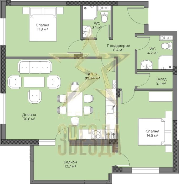 - **Брой спални:** 2