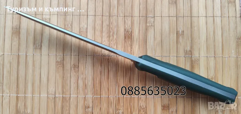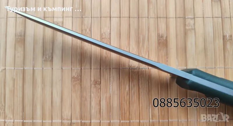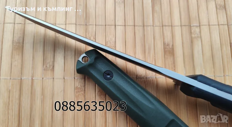 Full-Tang острието е с изчистена визия , гладко заточено, както отдолу, така и в горната си част за по-лесно проникване.