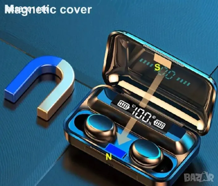 слушалки TWS F9+ 5С са с изключително дълъг живот на батерията. Кутийката за зареждане е с LED дисплей и с капацитет на батерията от 1200 mAh, кoeто позволява не само зареждането на слушалките, но и зареждането на смартфон.