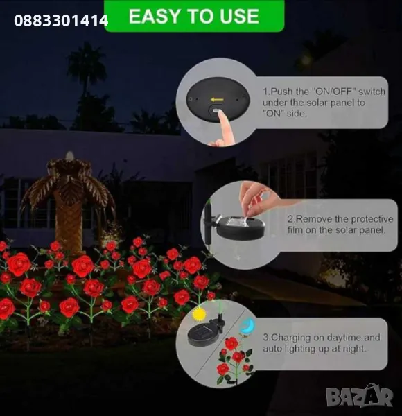 Тази модернизирана LED слънчева лампа с 5 розови цветя е идеалното решение за добавяне на стил и функционалност към всяко външно пространство. Със своя изискан дизайн и ефективна работа, тя ще внесе уют и красота във вашата градина или двор.