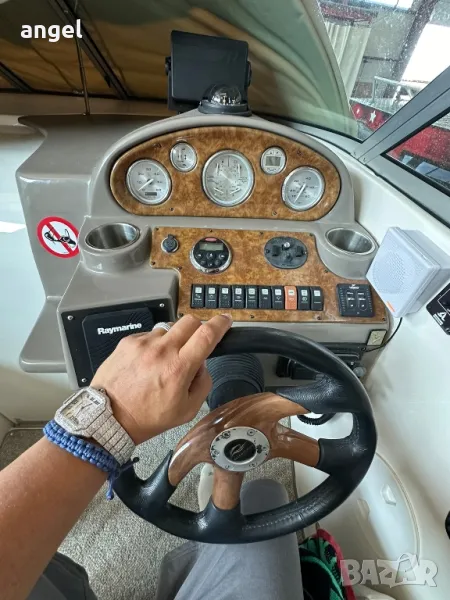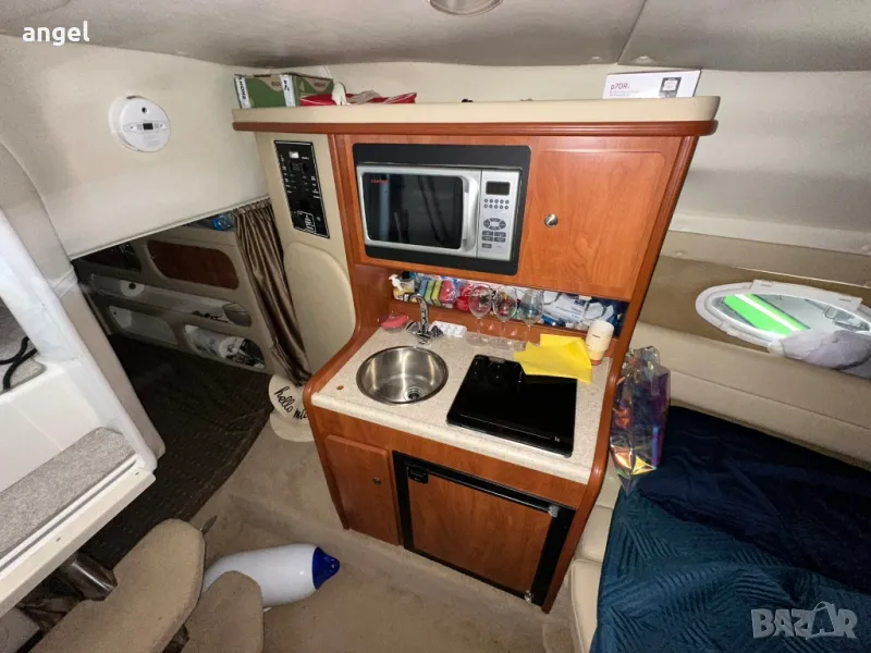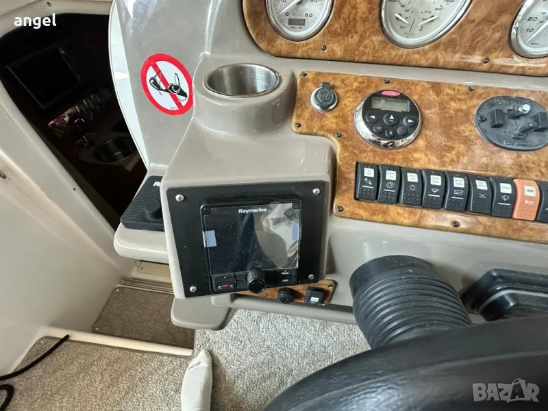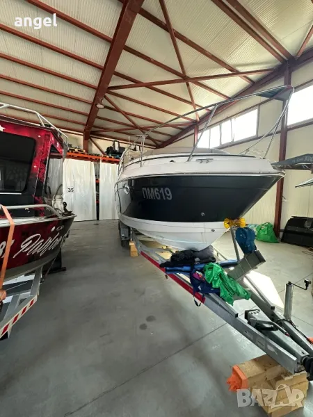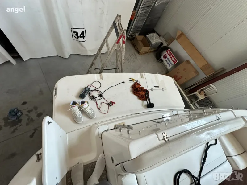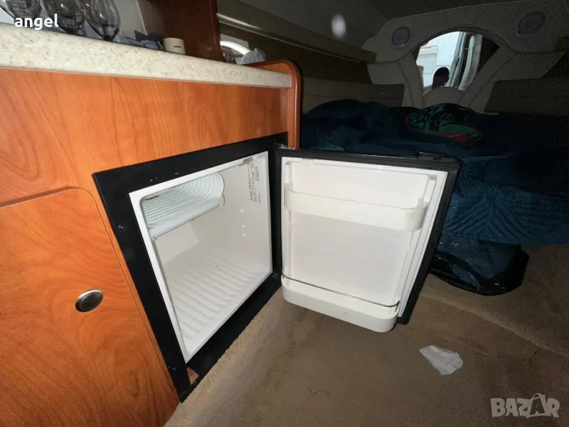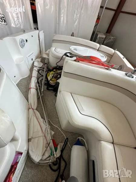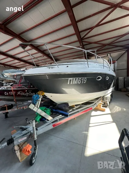 Съхранява се в гараж, на практика е чисто нова. Има две сепарете плюс място за капитана, паулба на носът с шезлонги за 3 или 4 човека, каюта напълно оборудвана с две спални за 4 човека, едната от които става на хол или кухненски бокс /масата е подвижна спрямо желанието за височината /, баня с тоалетна +топла вода , климатик, хладилник, телевизор, влагоустойчива аудио система и колони, резервоар за сладка вода, външен /вътрешен душ, инсталация за док бързи връзки ток и вода, двоен пропилер, две тенти + тента затваряща цялата лодка за зимно използване с прозорци не използвана, оригинално покривало и още мн други екстри.