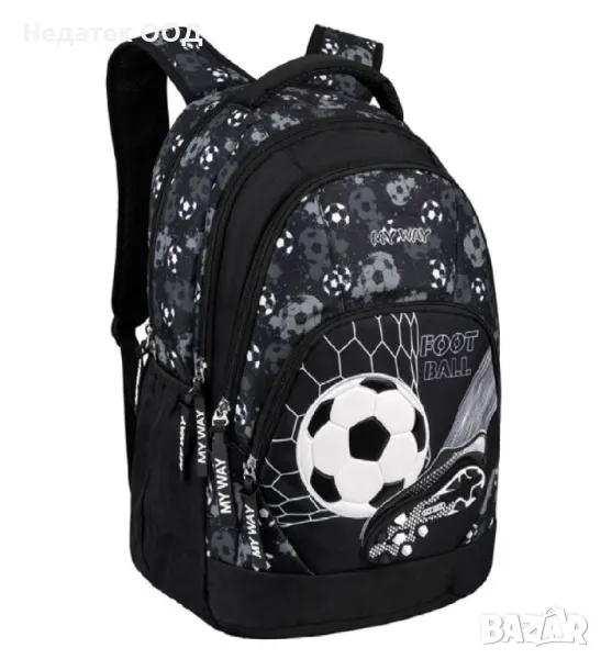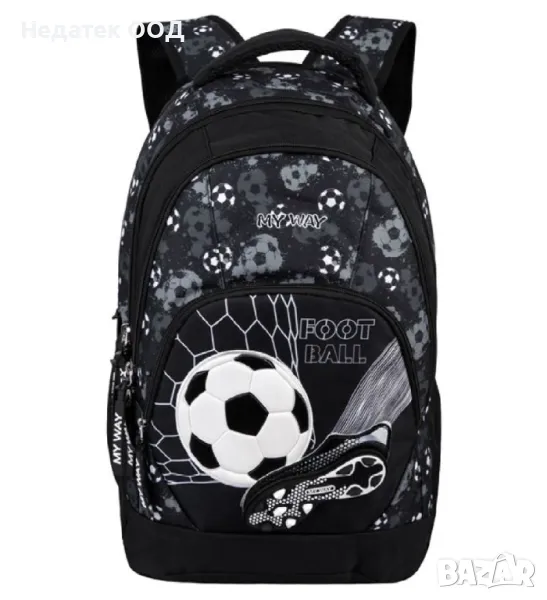 Ученическа раница, My Way, футболна топка, черен, 32x18x48 см