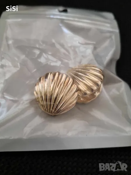 Обеци медицинска стомана с формата на мида,размери 2,2 х 2,3 см,английско закопчаване.