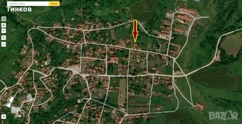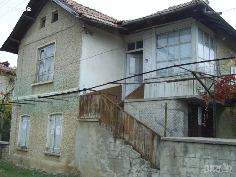 80 кв.м, стара двуетажна къща за реновиране или събаряне, гредоред 1935 г., с две външни пристойки и плевня. Кладенец.