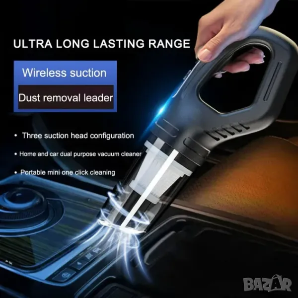 мини акумулаторна прахосмукачка USB 30W за кола,камион,офис