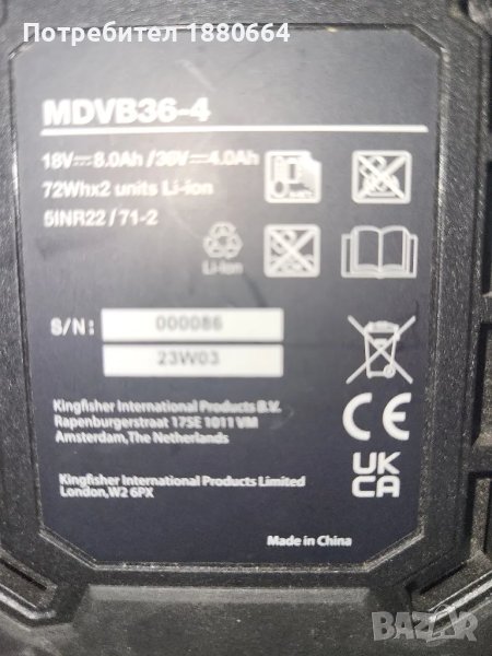 Работещи. Отлично визуално и техническо състояние. Сменен е щепсела, защото беше с английския стандарт.Батерията е на 18 волта - 8 А и на 36 волта -4А. Цената е по 40 за батерията и 40 за зарядното. За двете заедно 75 евро. Стават за всички машини на марката.
