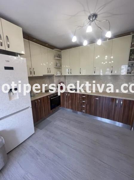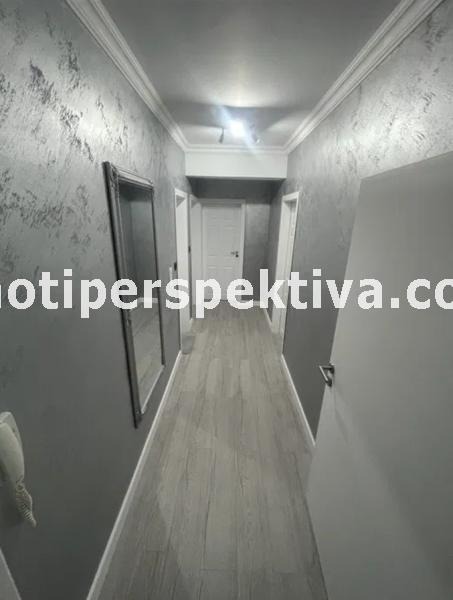 реф.14247 Предлагаме ви чудесен обзаведен във вида в който е на снимките апартамент с всички необходими уреди и мебели - готов за нанасяне .Чисто нов в малка кооперация има климатици и сот . Кухнята е с нови уреди и мраморни плотове.Има хладилник ,пералня съдомиялна,печка,керамични котлони.Телевизор в хола и кожена италанска холова гарнитура.Терасите са две ,едната е огромна на двете спални с панорама към младежки хълм другата е на хола с изглед към Родопите.Вратите са висок клас 80 от Англия.Обзавеждането е поръчково .Хидравличен асансьор.Сградата е малка бутикова с мраморни стълбища и стъклени парапети.