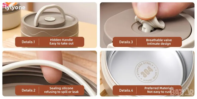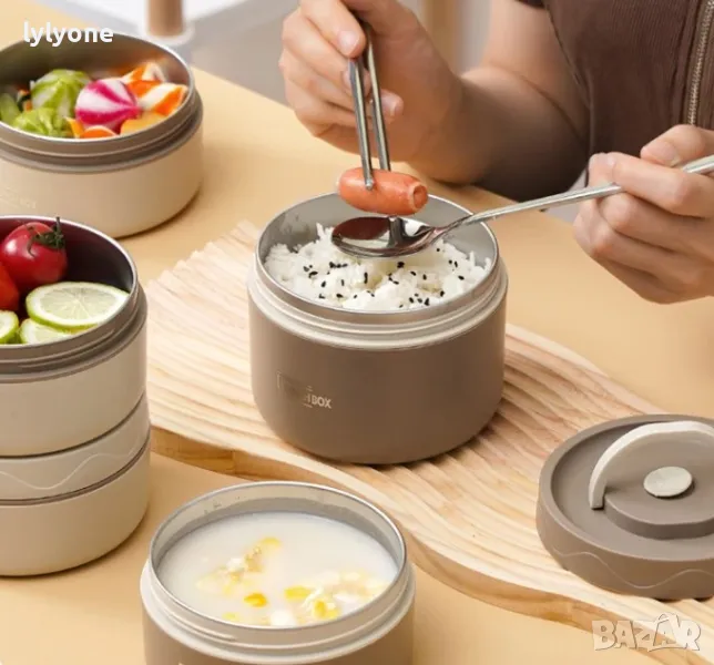 Термос купата е двуслойна, така тя е предназначена за пренасяне на топла или студена храна. Тя ще запази температурата на любимата ви храната за няколко часа (или около от 1 до 2 часа).
