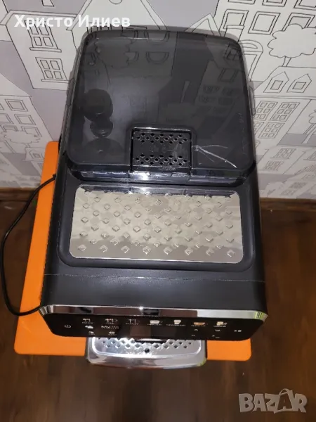 Работи без никакви проблеми. Направена е пълна профилактика. Единствената забележка е леко пукнат капак на отвора за кафе. Приложени са реални снимки.