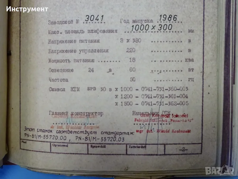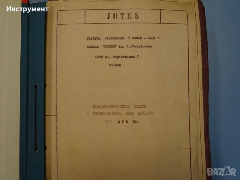 Предлагаме пълна техническа документация за плосък шлайф с хоризонтално вретено JOTES SPD Ponar-LODZ.