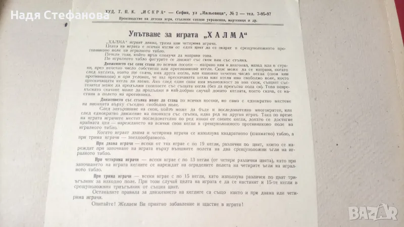 Детска настолна игра от едно време „Халма”, взаимствана от китайски шах на ТПК Искра София