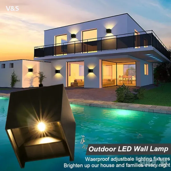 2. Външно стенно осветление LED. Алуминиевият корпус няма да ръждясва, стенната лампа намалява повече от 90% от консумацията на енергия.