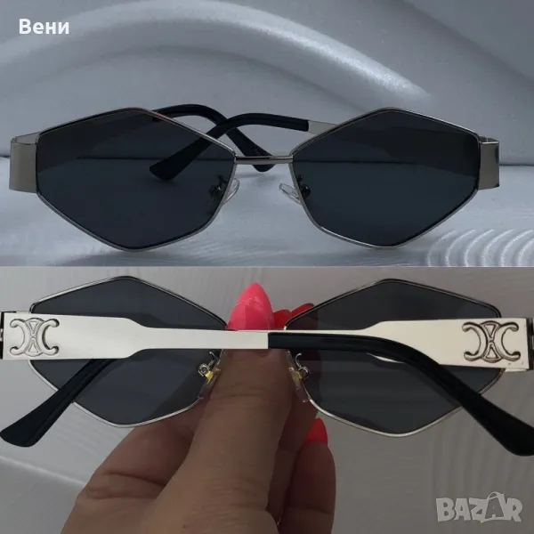 Модерни дамски слънчеви очила по модел на Celine с UV 400 защита. Много актуален модел. Антирефлексни. Реални лични снимки. Изпращам със Спиди или Еконт с преглед и проба!