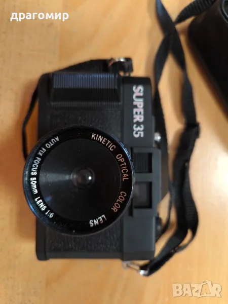 продавам фотоапарат Super 35, с оригинален кожен калъф, работи, имам още много други фотоапарати, камери, обективи, чанти, светкавици, батерии, бинокли, скенери, зарядни устройства, касети, филтри, ремъци, ленти при закупуване на повече неща отстъпка