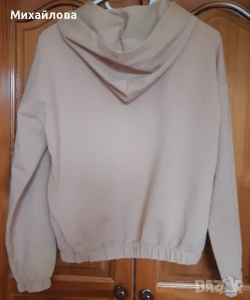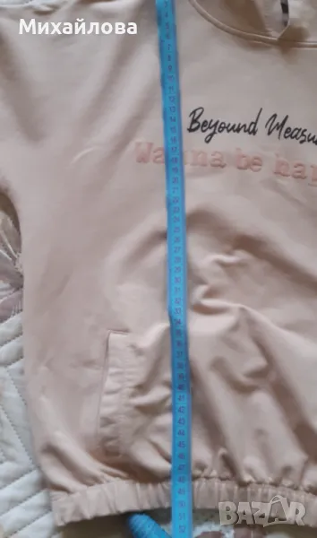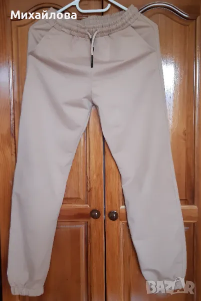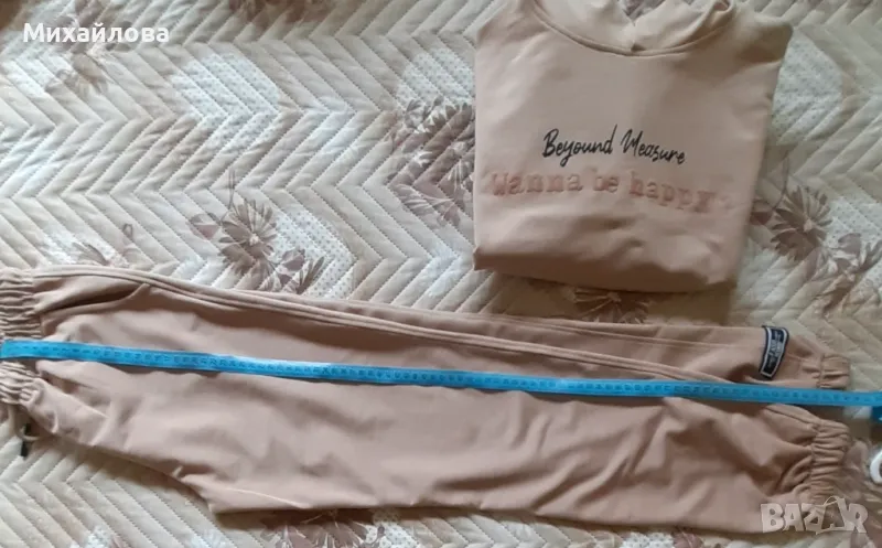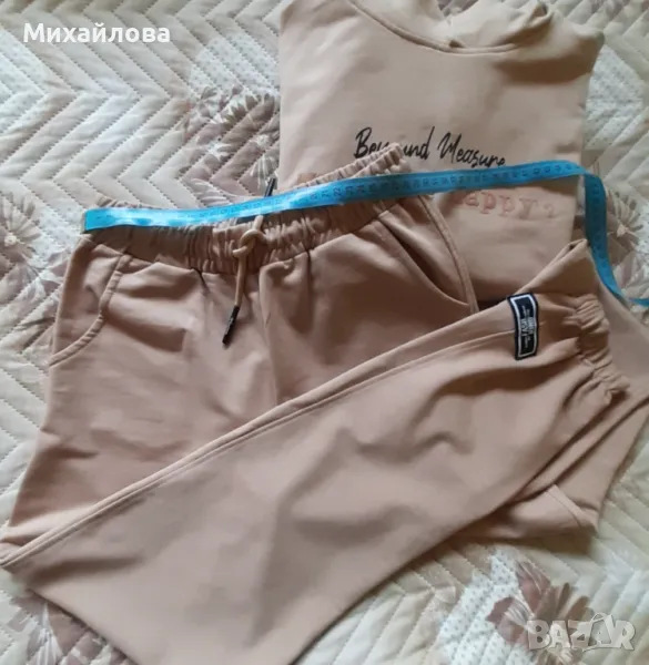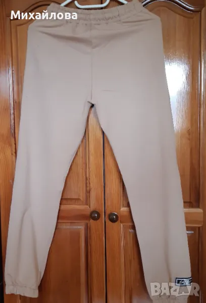 Комплект спортен панталон и суитшърт в приятен бежов цвят. Съдържанието на памук и еластан го прави комфортен и удобен. Много запазен и малко ползван.