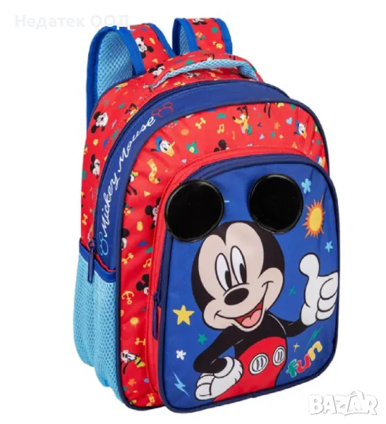 Ученическа раница за момче, две чанти с 2 странични джоба със странична мрежа за чанти и мек Мики дизайн с 3D джобове. Има издръжливи ципове и регулируеми презрамки.Побира всички необходими ученически пособия и прави ежедневното пътуване на детето по-лесно и забавно!