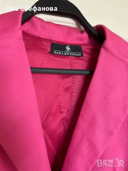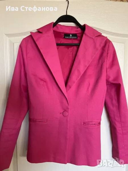 Уникално ново розово делово бизнес елегантно сако блейзер Sara Sweidan . Размер S ще стане и за Хс размер . Дължина 65 см , бюст до 92 см . Разгледайте и другите ми обяви .