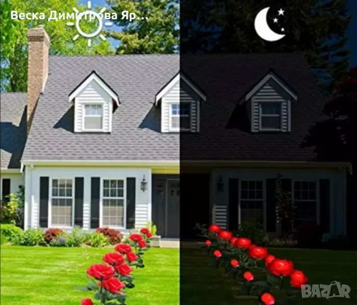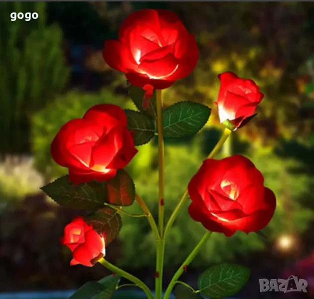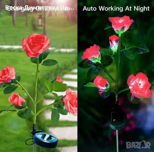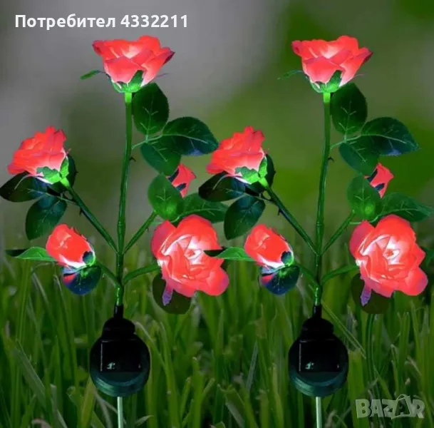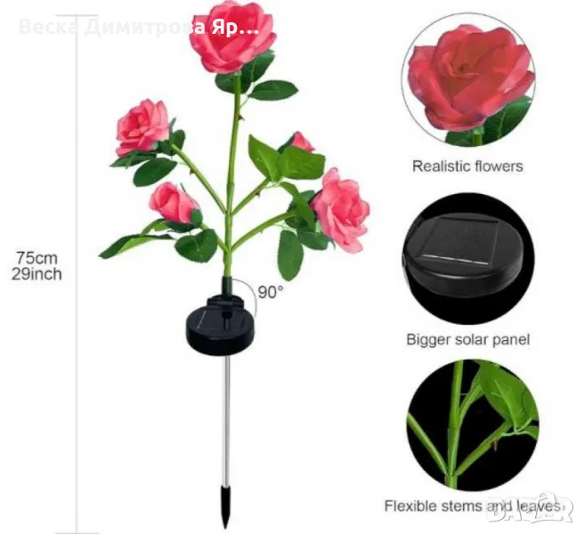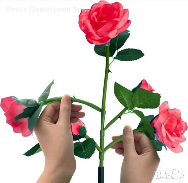 Модернизирана LED слънчева лампа с 5 розови цветя → Обява 47195803