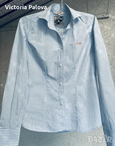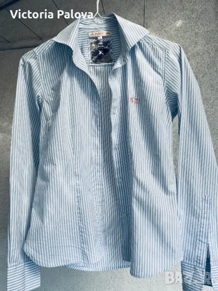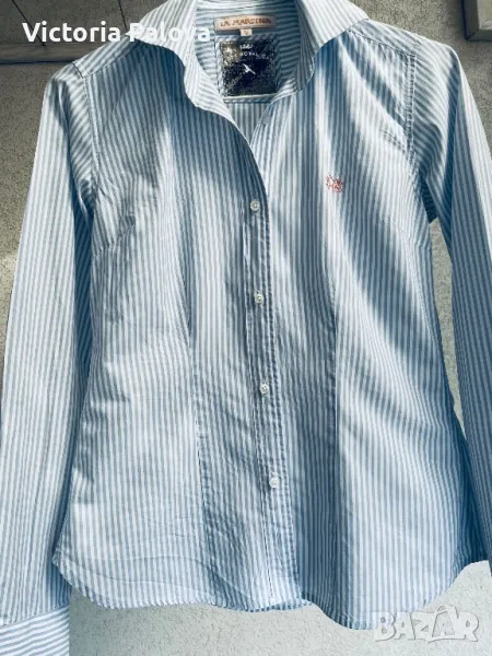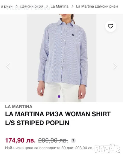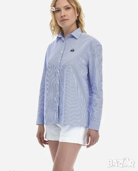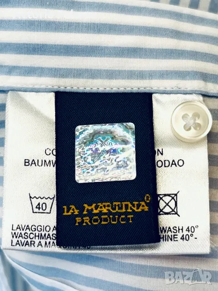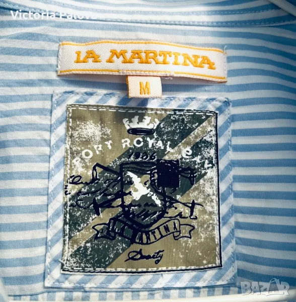 Продуктите на марка LA MARTINA са премиум класа. Материята се произвежда по специална технология ексклузивно за този бранд, технологията се казва “Grasser” - памукът става дишащ, водоотблъскващ, мек и много приятен на допир, за хора с чувствителна кожа и за тези, на които е важен стилът и комфортът. Рамо - 38см, ГО -50см, дължина - 63см, талия - 42см, ръкав - 63см, избродирано лого на бранда отпред и на страничния шев долу, объл долен край.