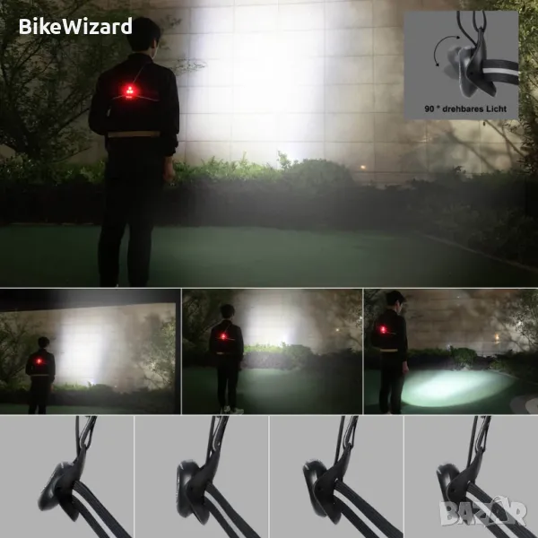 West Biking Светлини за бягане Лампа за гърдите с регулируем лъч 500 лумена, USB презареждане НОВО