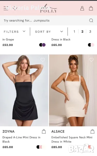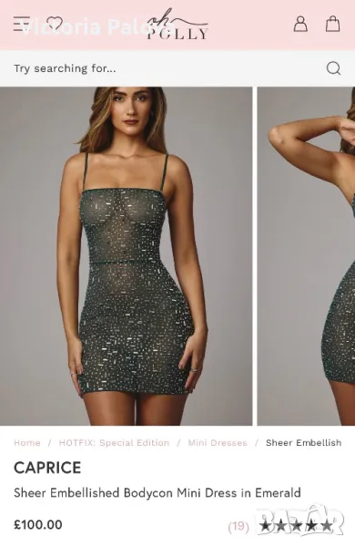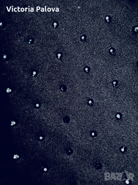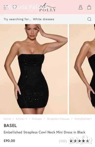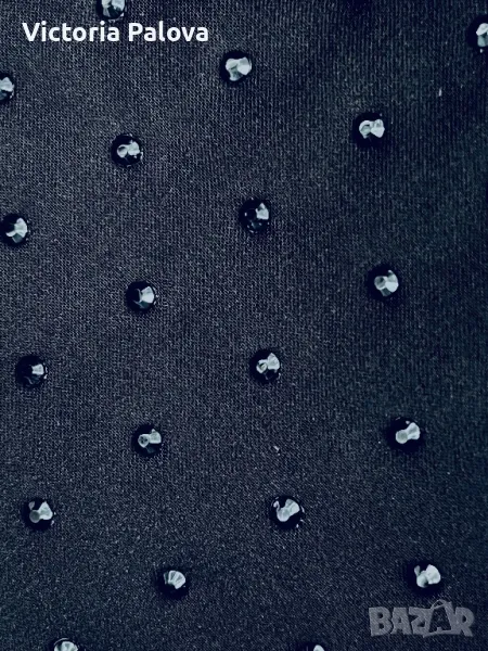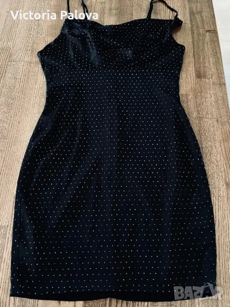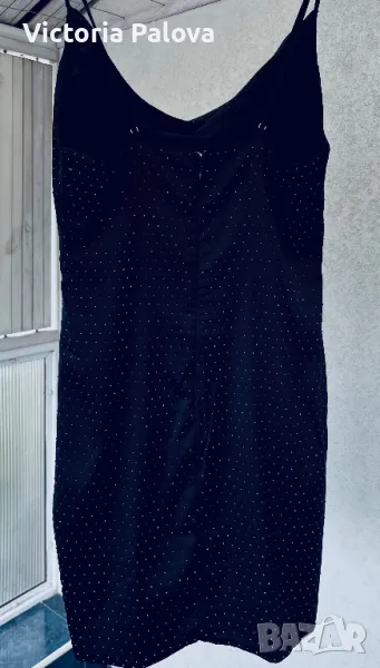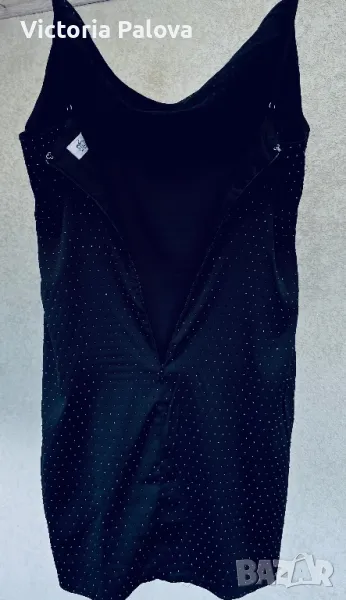 Британски фешън гигант с много смели дизайнерски решения. Роклята е еластична, с блестящи деликатни камъчета, дължината ѝ е 83см, но може да се регулира от презрамки. ГО - 42см, талия - 36-38см, ханш - 46-47см. Цип на гърба, подсилващи бонели от двете страни под мишниците.