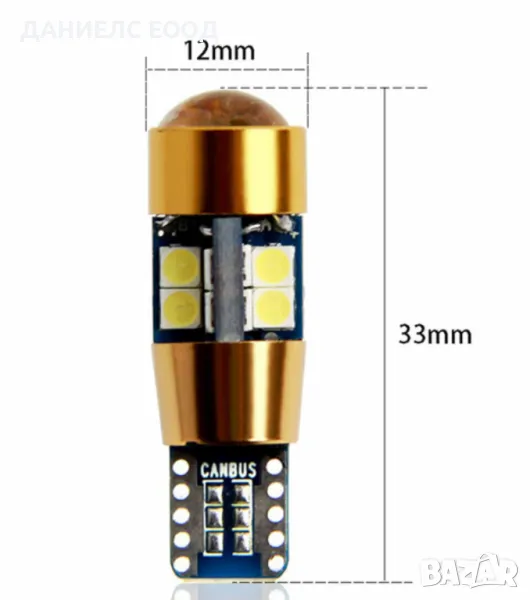 Т10 W5W са диодни крушки с 19 SMD диода, тип 3030 с вградена CANBUS система и наситеност на светлината 360 лумена на крушка.