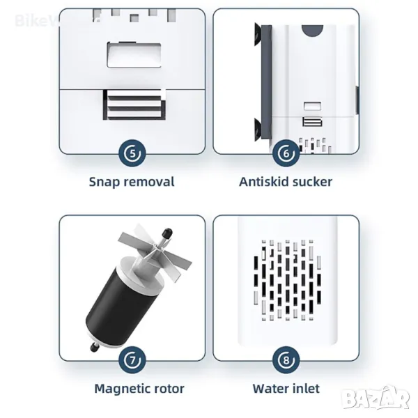 Филтър с филтърна кутия с голям капацитет (гъба и биохимикали) се използва за многослойна филтрация. Той автоматично абсорбира изпражнения, отломки и остатъци от водата, създавайки здравословна и чиста среда за вашите риби или костенурки. 【Ултра тих】 Шумът е по-малък от 35 децибела. Вграденият аквариумен филтър приема висококачествен дизайн на двигателя, създавайки тиха работна среда, която може да се използва в космоса. Вътрешен филтър за аквариум: Мощност: 15 W, размер на продукта: 7 x 6,5 x 22,8 cm (дължина на захранващия кабел: 80 cm=31,2 инча), тегло: 480 g.Вендузата се засмуква в дъното на резервоара за вода в аквариума и може да се използва като ниско засмукваща помпа. 2. Може лесно да се разглобява и почиства без нужда от инструменти, което го прави по-удобен за смяна на филтърния елемент. 3. Вграден биохимичен памук, оборудван с професионални филтърни елементи за по-добри резултати (филтърните елементи трябва да бъдат закупени