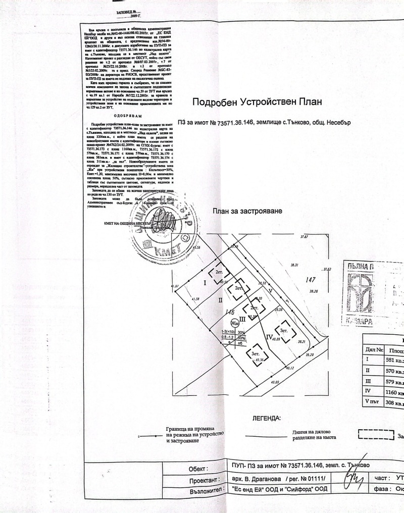 Подновена регулация и визи за проектиране от 2025г! Парцел от 14,000м2 разделен по-малки от по 600м2-3,200м2 за изграждане на вилно селище с еднофамилни къщи или постройки до 8м. С влязъл в сила ПУП за изграждане на къщи със самостоятелен двор и жилищна сграда до 8м. С издадени изходни данни от ВИК Бургас и възможност за включване към вода и канал на 160м. с готов проект за външно ВИК. Село Тънково разполага с нова пречиствателна станция и ремонтирана канализация и водопровод! Започната процедура за изместване на далекопроводи, разположение в единия край на имота, разноските за изместването с кабел под земята е включен в цената. Започнати процедури за присъединяване към ЕВН и парцеларен план за ВИК.