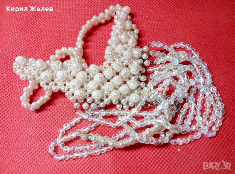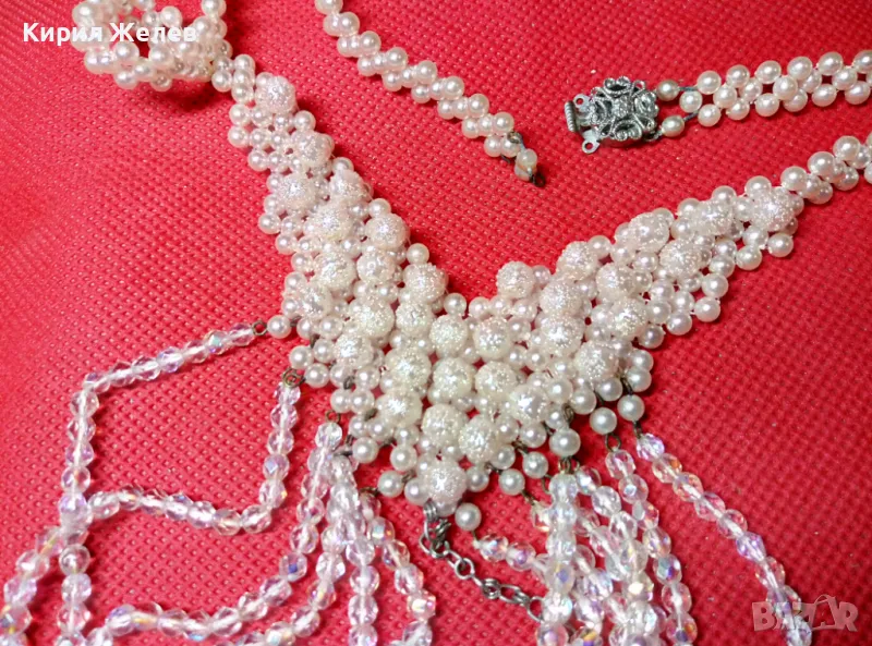 СТАРА РАЗКОШНА ПЕРЛЕН ТИП ОГЪРЛИЦА с ИСКРЯЩИ ПЛАНИНСКИ КРИСТАЛИ и ФИЛИГРАННА ЗАКОПЧАЛКА 47340