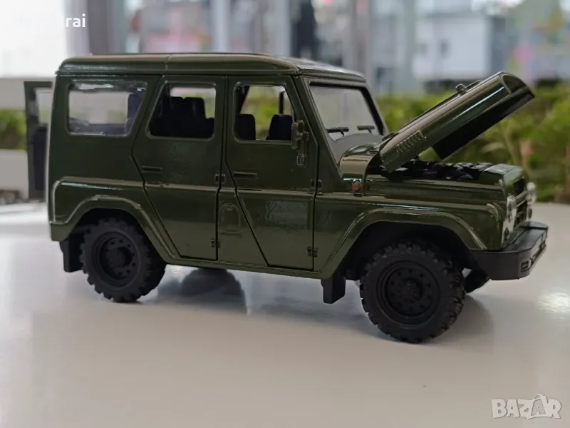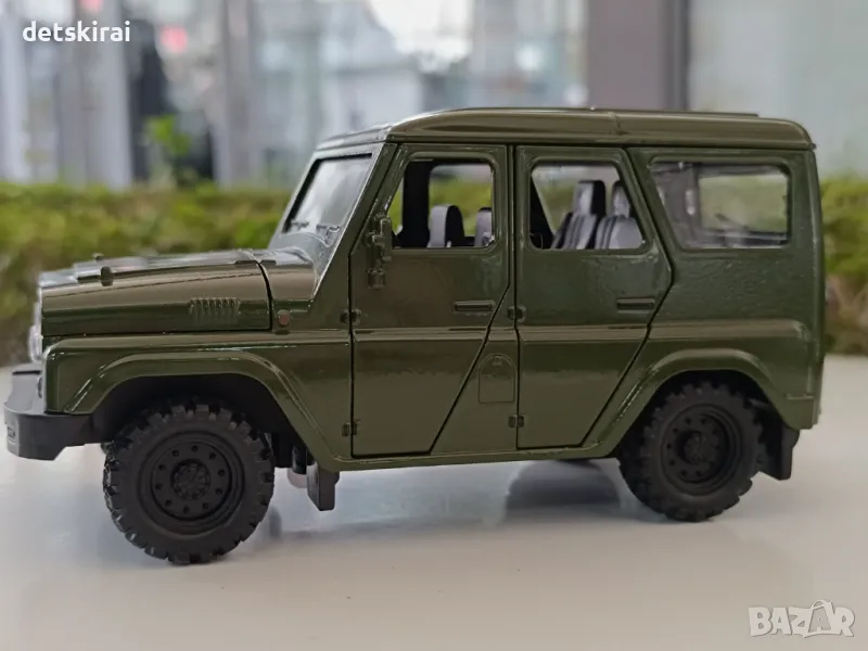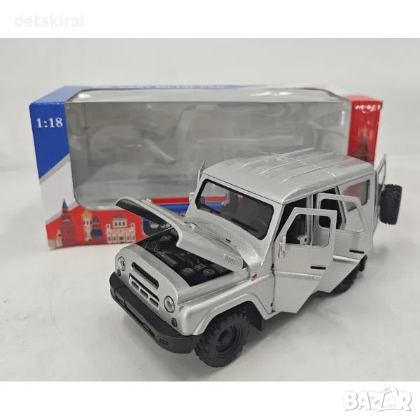 Количката УАЗ е с функционални отварящи врати, както и с отварящи се преден и заден капак. Това добавя допълнителна реалистичност и възможности за игра, които ще стимулират въображението на всяко дете.