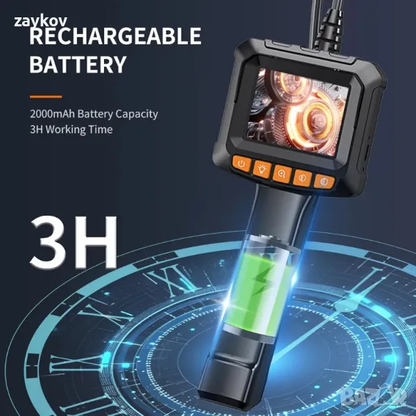 Ръчен промишлен ендоскоп: С ергономичен дизайн на дръжката, тази ръчна промишлена ендоскопска камера осигурява удобна и безпроблемна работа. Вградена батерия от 2000 mAh, ендоскопската камера осигурява 2-3 часа продължителна употреба при пълно зареждане, което ви позволява да извършвате инспекции без прекъсвания.
