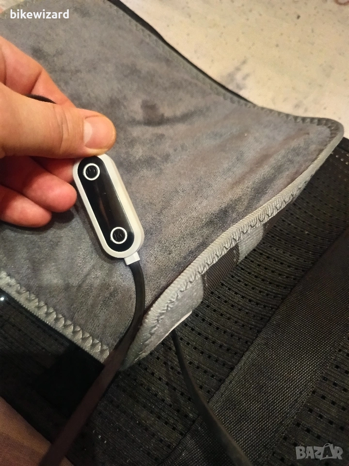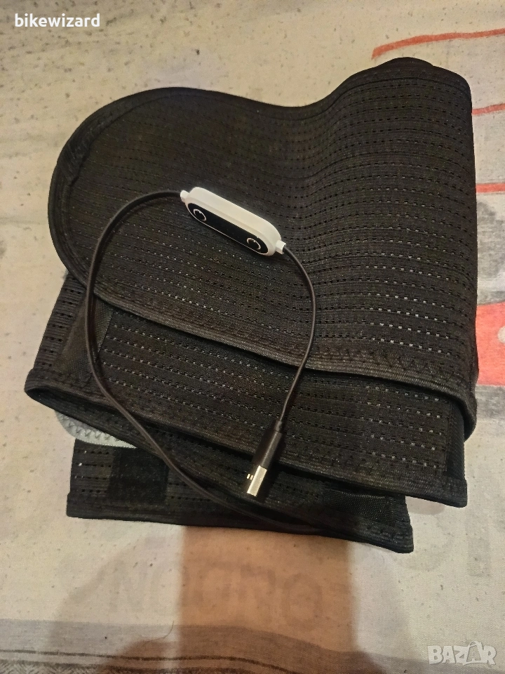 Размер L 99-119 см.,захранва се със power bank включен в комплекта,три нива на загряване.