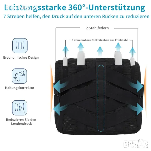 С 4 опори от неръждаема стомана и 2 стоманени пружини, поставени по протежение на кръста, скобата за гръб за вдигане на тежести осигурява 360° силна вертикална опора за долната част на гърба ви и постига декомпресия на гръбначния стълб, предотвратявайки наранявания на гърба от вдигане на тежести, дълго стоене или седене, правене домакинска работа.Ергономично проектираната опора за гърба осигурява силна опора за долната част на гърба и коремните мускули, като увеличава допълнителното налягане около кръста, за да предотврати умора и напрежение.Опората за гръб срещу болки в долната част на гърба съдържа нагревателна подложка, фиксирана с велкро, която можете лесно да управлявате чрез контролера. Има 3 настройки за нагряване (ниска, средна, висока), които ви позволяват да регулирате температурата според нуждите за насърчаване на кръвообращението и облекчаване на болките в гърба.Поддържащият колан за гърба е изработен от дишащ, лек и перещ се материал. Мрежестият дизайн ще ви осигури комфорт през целия ден. Уникалните двуслойни ремъци могат лесно да регулират необходимото налягане в кръста, правейки колана по-подходящ за тялото ви, което ви позволява да се наслаждавате на свободата на движение по всяко време и навсякъде.